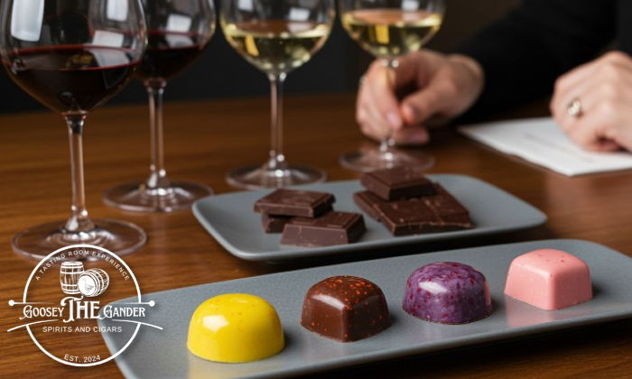 | What You Get | • Welcome drink: Cocktail, Champagne, or single taster of choice (gin, rum, whiskey, brandy, or liqueur) • Charcuterie board & light finger foods • Selected wines – 2 white and 2 red with chocolate pairing • Tastings/sales of additional Goosey Gander offerings available after the session |