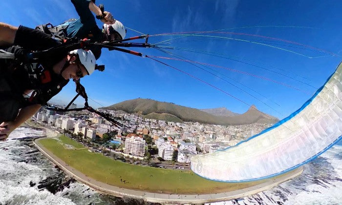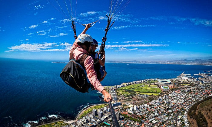 Soar above Cape Town with a Tandem Paragliding Flight with AirVentures from Signal Hill. Take in panoramic views of Table Mountain, Lion’s Head, Robben Island, and the Atlantic Ocean as you glide safely with an experienced instructor.