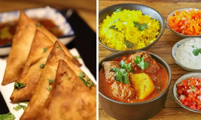- Gourmet samoosas (3): chicken or sweet potato & pea