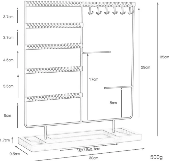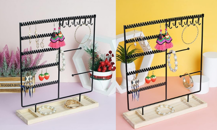 - 5-Tier Earring Display → Organize up to 45 pairs of earrings with 90 holes for various earring types.