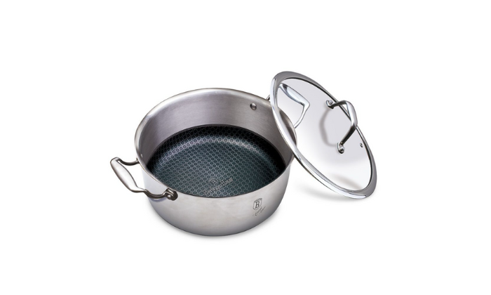 - Combines the benefits of a stainless steel pan with those of a non-stick coating pan.