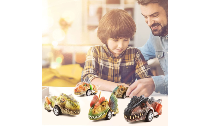 Key Features- Set of 6 dinosaur-themed pull-back cars