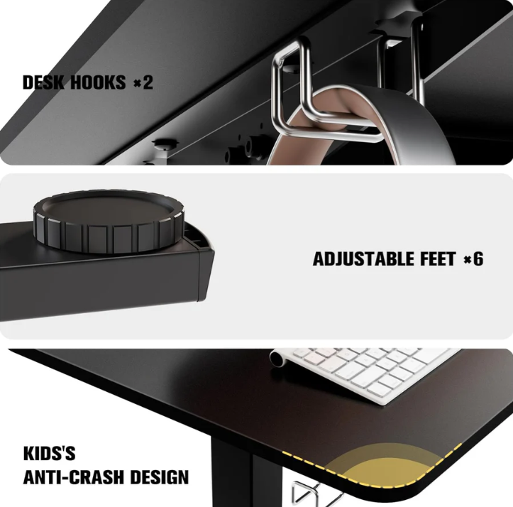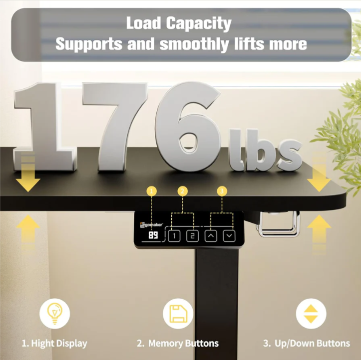 - Solid Construction: Made from heavy-duty steel, this desk supports a weight capacity of 80 kg. It has a travel speed of 22 mm (0.9 inches) per second, ensuring stability even at maximum height. The gentle start/stop functions keep operation smooth and quiet (less than 50 dB).