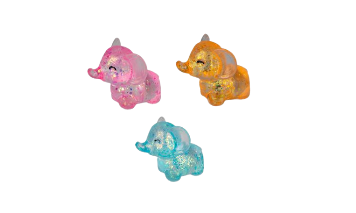 A sparkly elephant-shaped squeeze toy that provides sensory fun and stress relief.