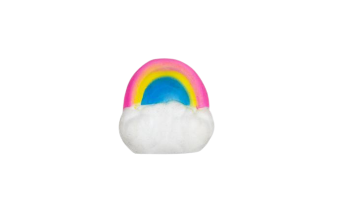 A charming unicorn squeeze toy featuring a glittery rainbow cloud, perfect for stress relief or sensory fun.
