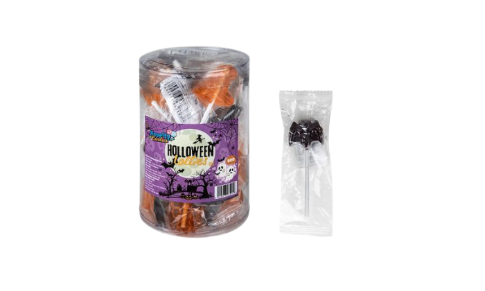 Fun Halloween-themed lollipops shaped like spooky characters and symbols.