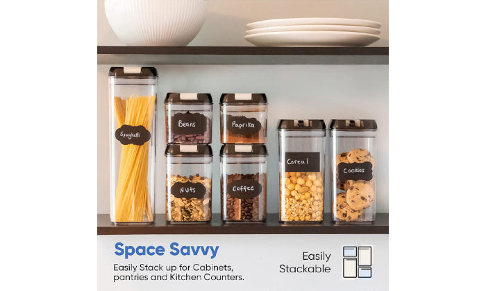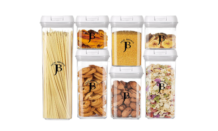 Jack Brown canister sets for kitchen counter will transform your kitchen glamorously. These air tight sealable containers for food come with labels & Chalkboard Marker.