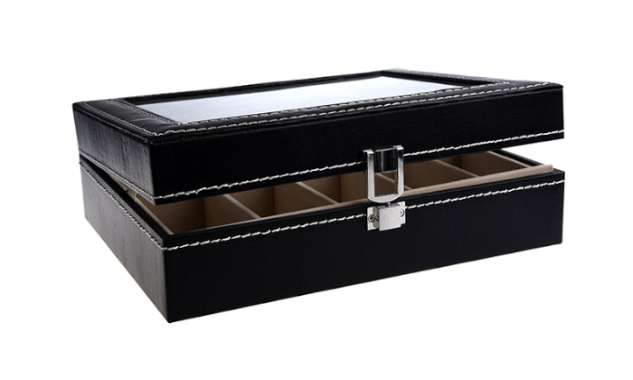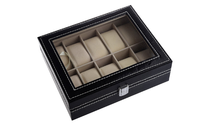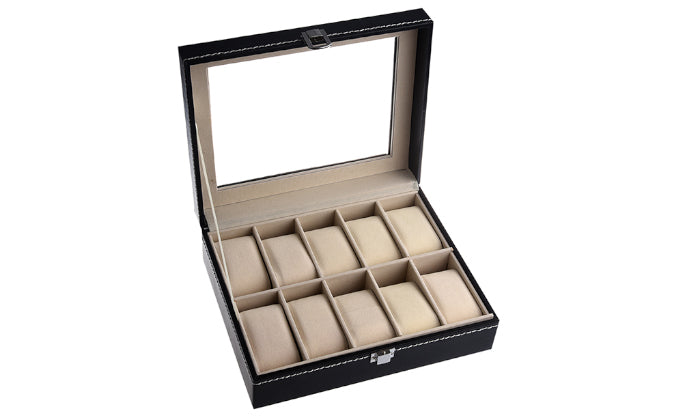Jack Brown Luxury 10-Slot PU Leather Watch Display Box - Black