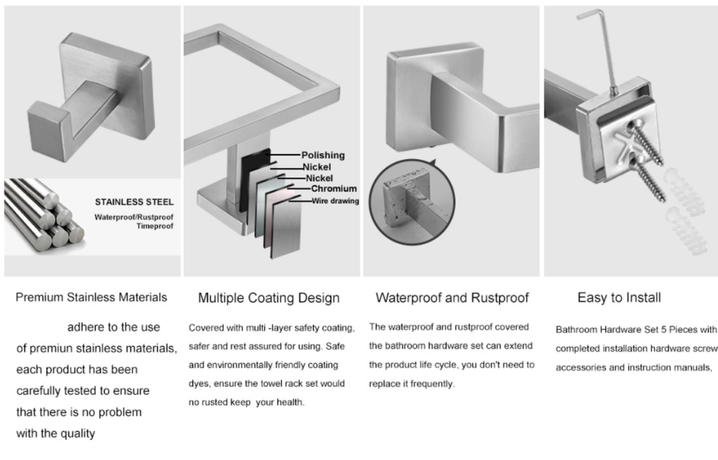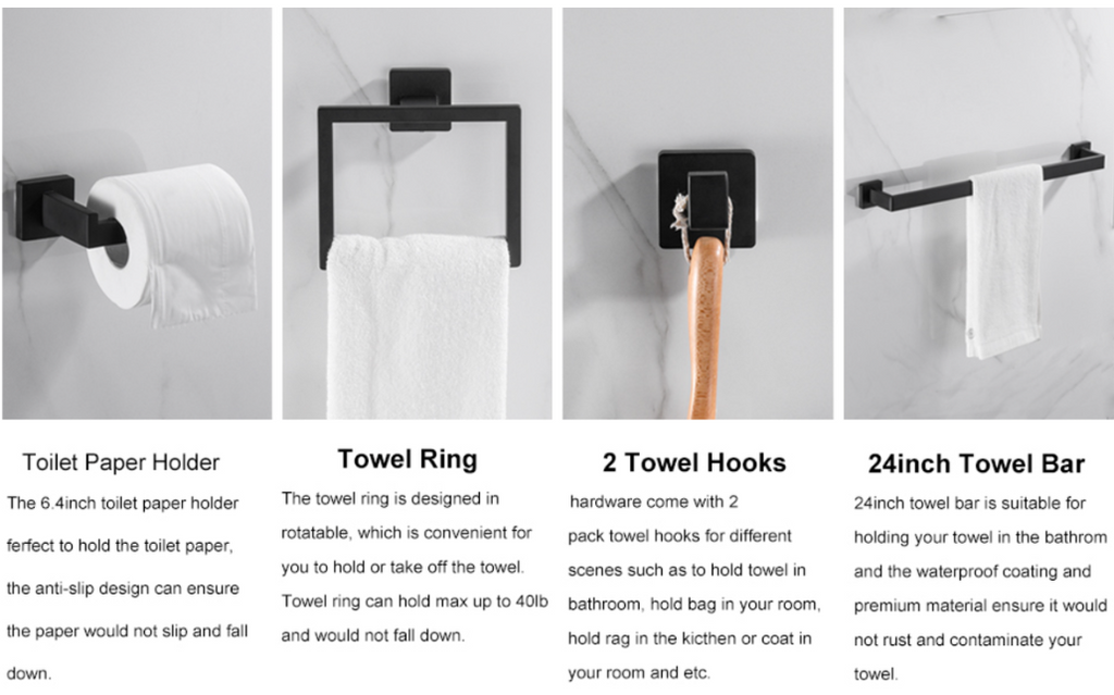 | What's in the box | 5-Piece Bathroom Accessories Set |