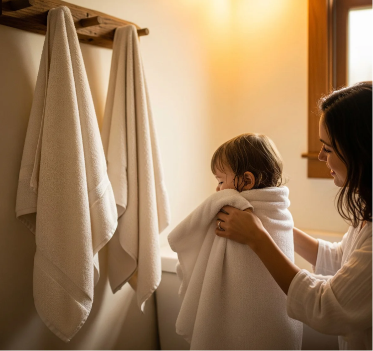 Generous size → Large 70×140cm towel offers full-body coverage and a cozy wrap-around feel.