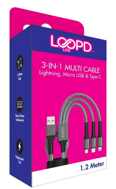 LOOPD 3-In-1 Multi Cable 1.2M - Black