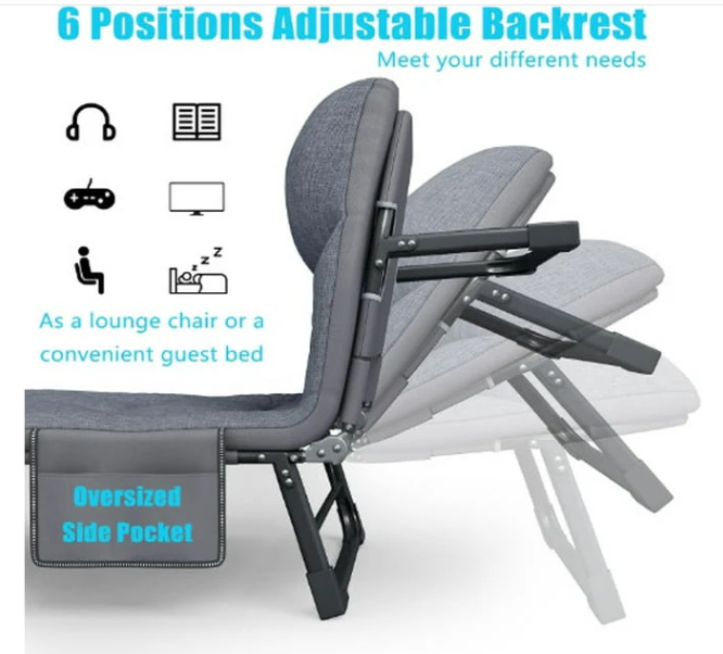 2-in-1 Design: Functions as both a lounge chair and a foldable bed.