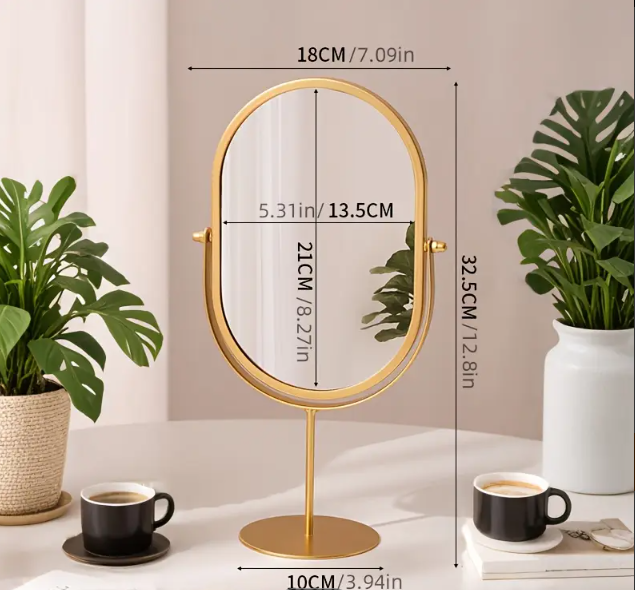Crafted with a durable frame available in classic black or elegant gold, and offered in various shapes and rotation options, it’s as much a decorative piece as it is a practical tool. The 360° rotating feature allows you to adjust the angle for the perfect view every time, while its sturdy base ensures stability during use.
