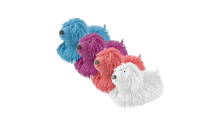 The Prickly Dog (20cm) is a soft, squeezable toy covered in textured spikes for tactile fun. It’s perfect for stress relief, fidgeting, or playful interaction.