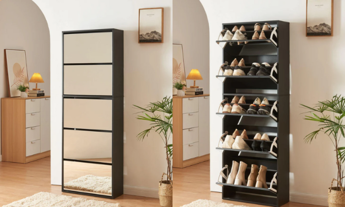 - Shoe Cabinet: Shoe cabinet may be your best choice. The modern design fits any furniture style, ideal for the entryway, hallway, living room, or bedroom.