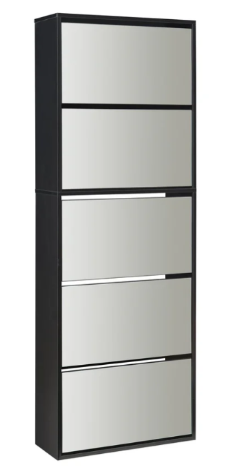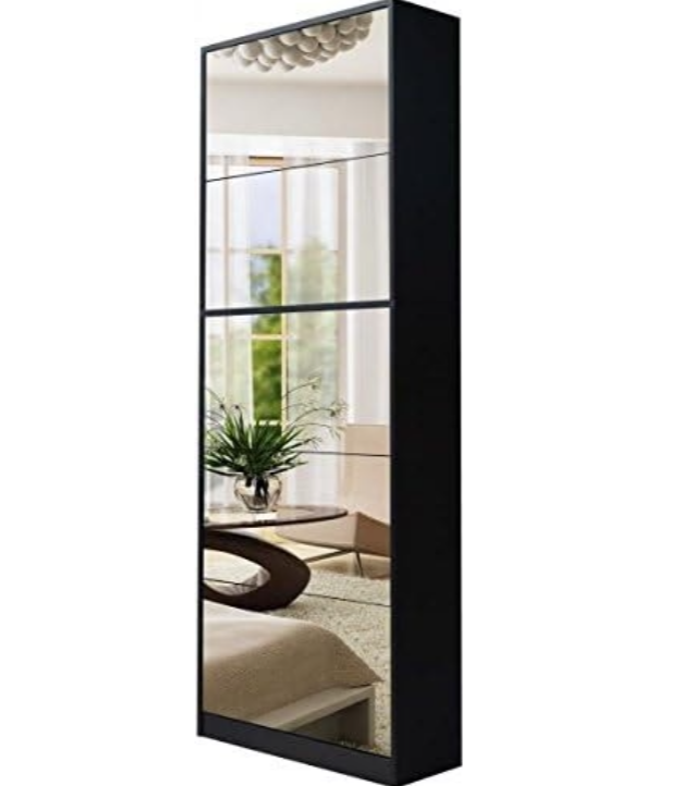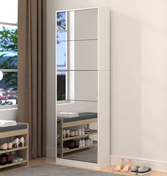 - Unique Design - Mirrored Flip Drawers: The unique design of mirrored flip drawer offers convenience for you to get dressed up before going out. This slim and tiny shoe cabinet is really space-saving and perfectly suits any of your living space.