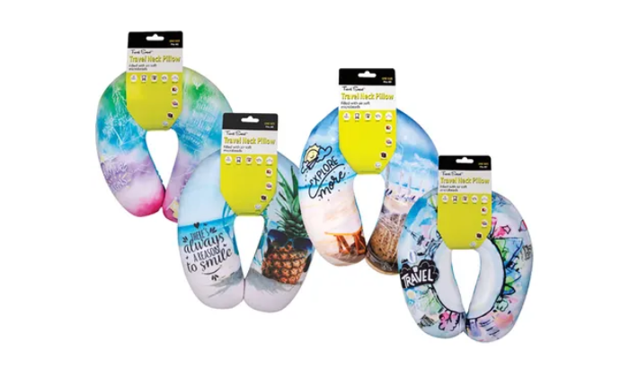 Travel neck pillow 32x29cm, assorted colors. Comfortable support for travel and long journeys.