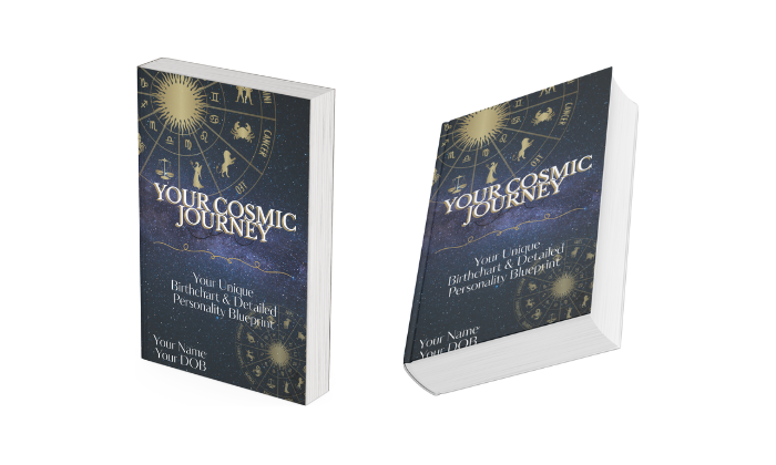 Uncover the secrets of your stars with Your Cosmic Journey – a personalised hardcover astrology book crafted from your unique birth chart. A premium keepsake gift filled with detailed astrological insights, beautifully presented in full colour.