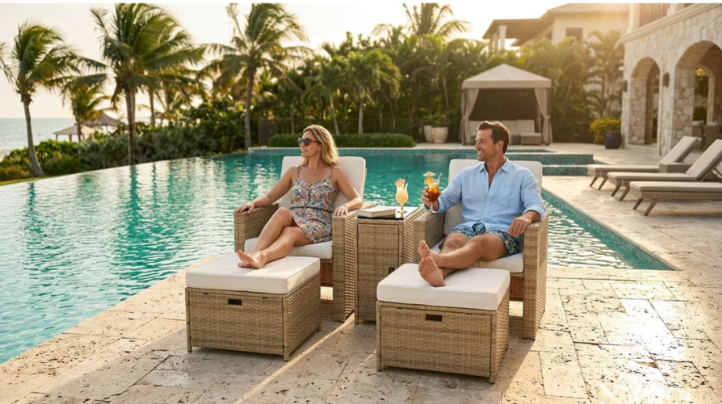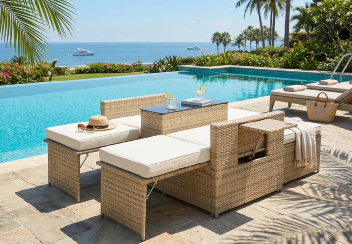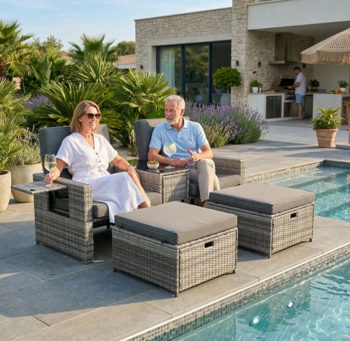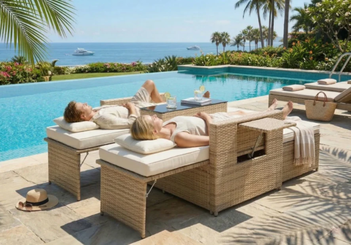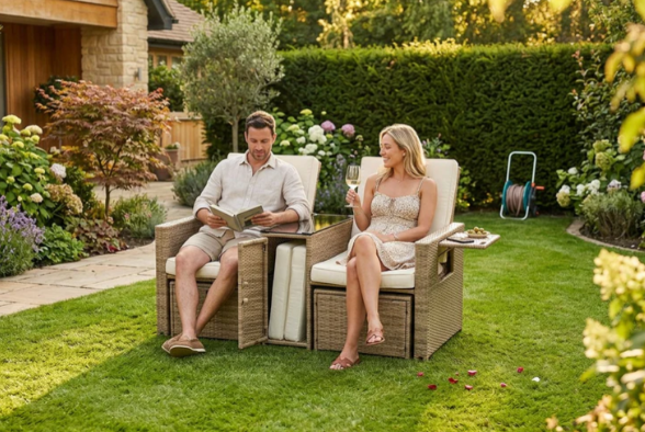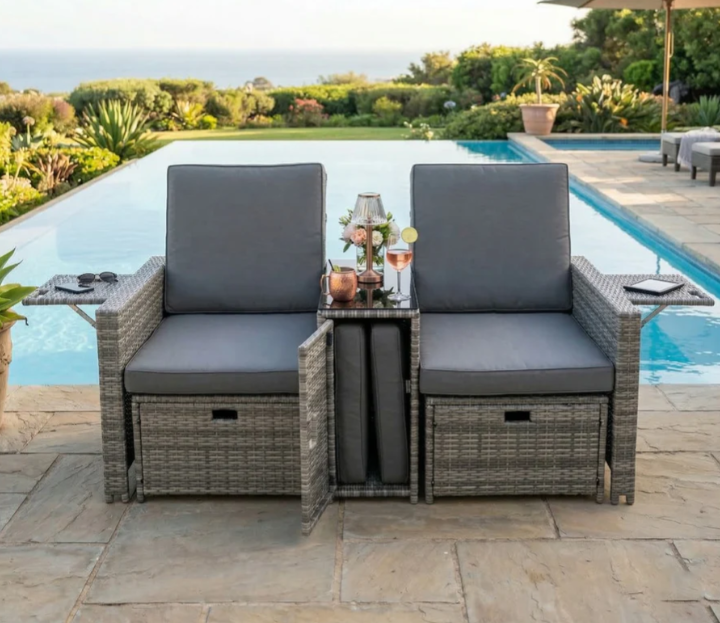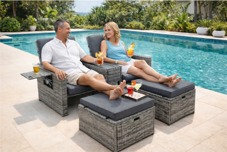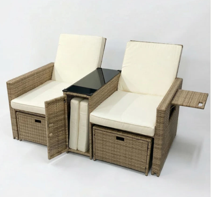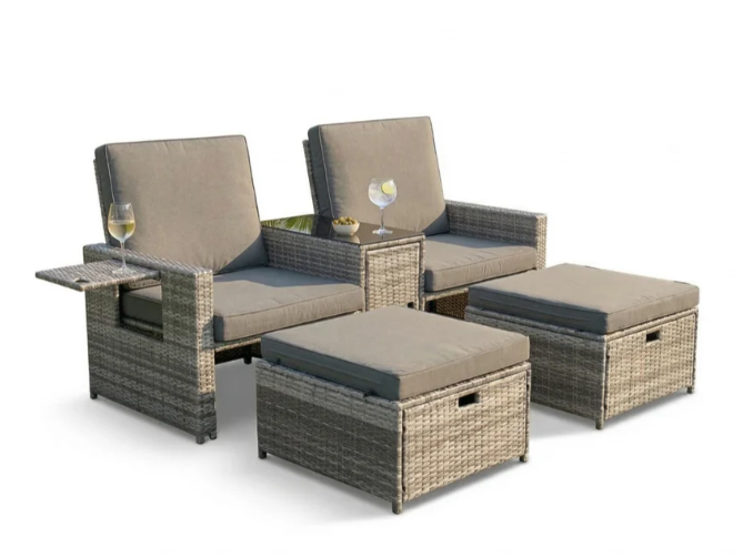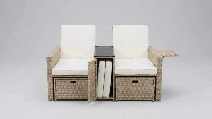 - It has multi-level adjustable backrest, so this outdoor sofa set can become a Lounger, Chaise, or even Bed. Rattans are elegantly woven over sturdy powder coated steel frames offering extra support and durability with load capacity of 300lbs for each chair