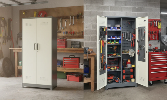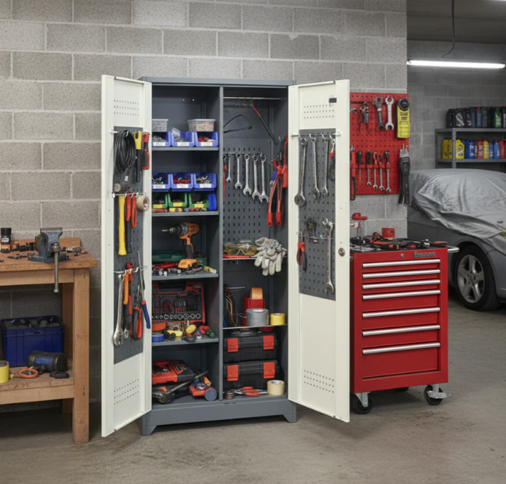 - Metal garage storage cabinets come with adjustable feet; you can adjust the height of the cabinet according to your needs
