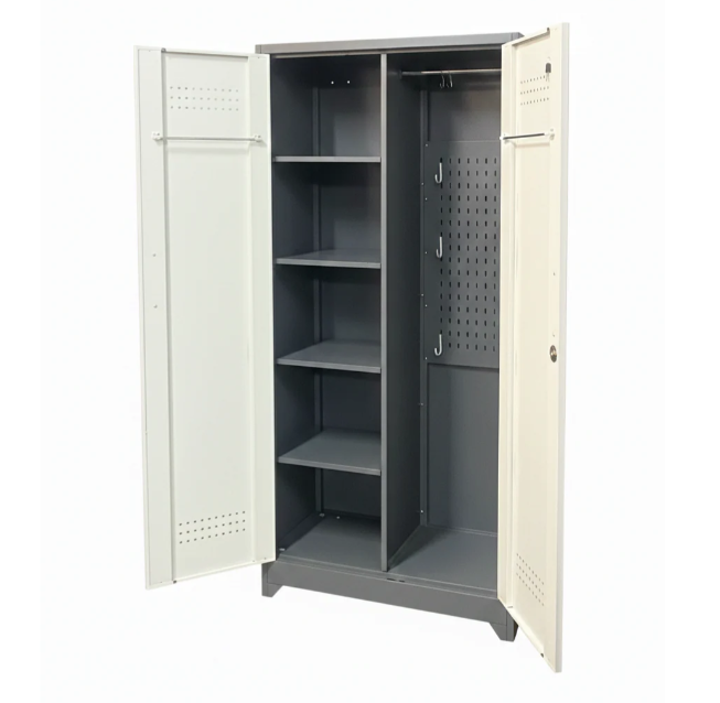 - Tall metal storage cabinets are made of heavy gauge steel, resistance to chipping, corrosion and rust. This cabinet comes with 4 doors and 2 locks, provide higher security for your valuables and important items