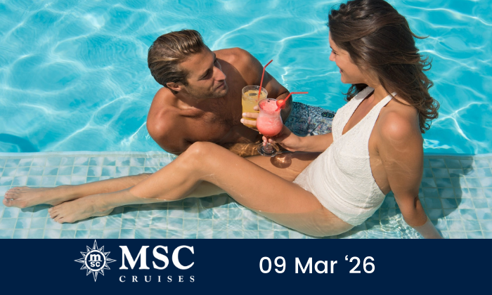 All cruise offers are capacity controlled and offer selected cabins at a specific price. The above fares include mandatory port, service, and insurance charges. Not combinable with other brochure discounts or MSC Voyager. Offer valid for new bookings only