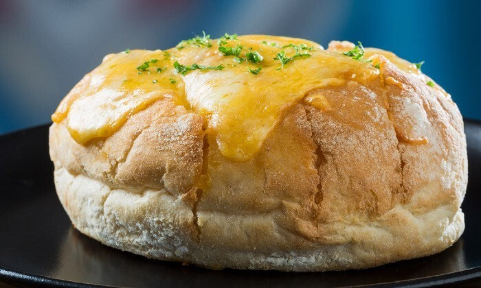 Portuguese roll smothered in garlic butter and topped with melted cheese.