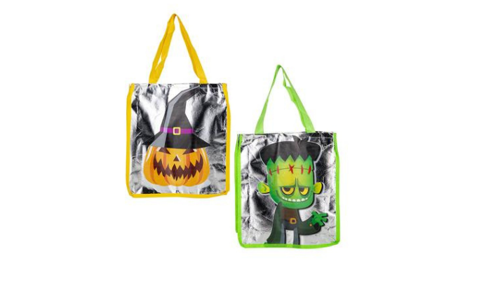 A shiny and eye-catching trick-or-treat bag available in assorted designs, perfect for Halloween night.