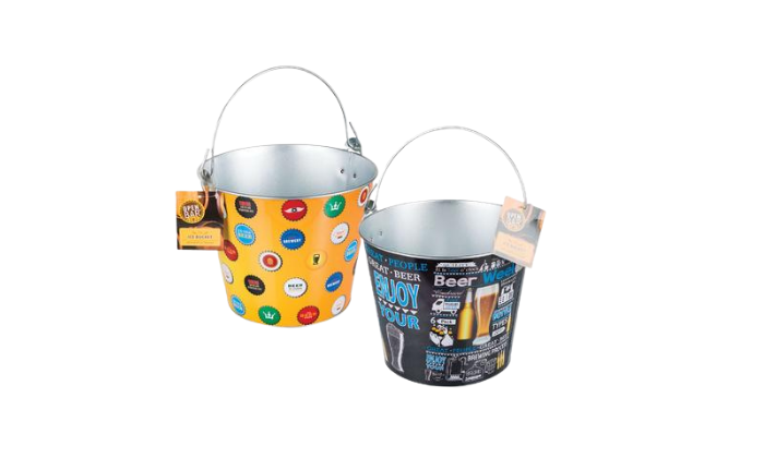 22x18cm decorated tinplate ice bucket, ideal for chilling drinks at parties, braais, and events.