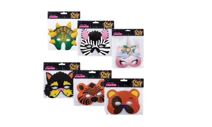 Set of 6 fun animal masks for parties, ideal for dress-up, themed events, and children’s celebrations.