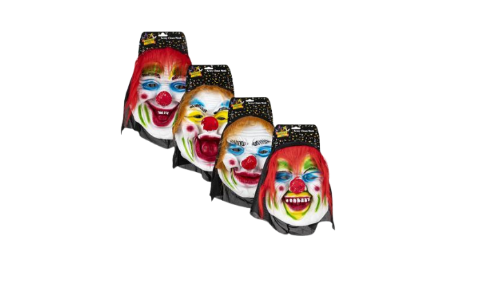 A terrifying clown mask available in assorted styles to complete your scary costume.