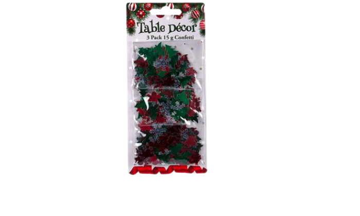 Bring sparkle to your celebrations with the Xmas table decor confetti 3pk 15g. Ideal for decorating tables at Christmas gatherings.