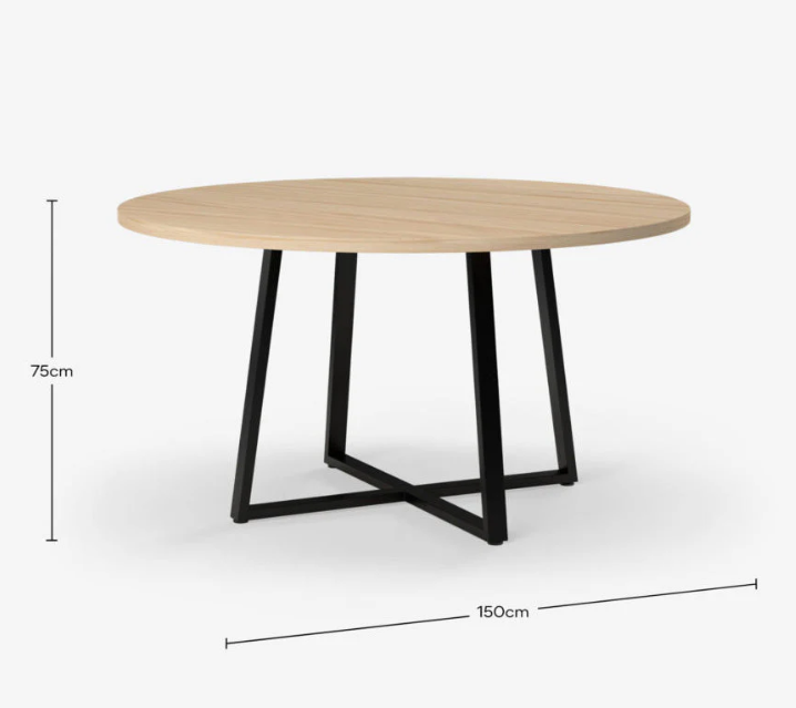 Bring mid-century industrial charm to your dining area with the Verena Dining Table. Featuring a contrasting oak tabletop and solid black metal legs, this table combines style, durability, and practical design for everyday use.