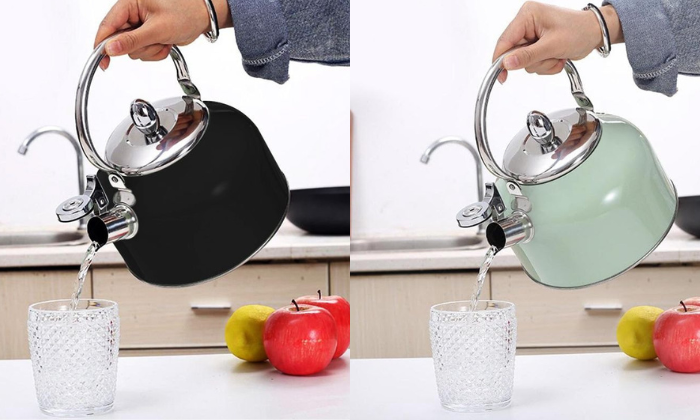 - Features a whistling spout that alerts you when the water has reached boiling point, preventing over-boiling and ensuring safety. The spout lever allows for easy opening and pouring.