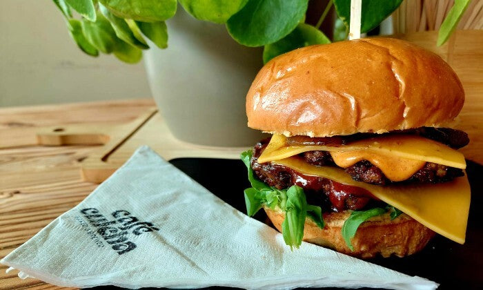 Double the flavour, double the fun! Treat yourself and a friend to Café Culcha’s famous Double Smash Cheese burgers, paired with refreshing Iced Matcha Lattes and a decadent Sweet Treat to share. Perfect for a delicious Sea Point outing, this combo for two is the ultimate burger experience.