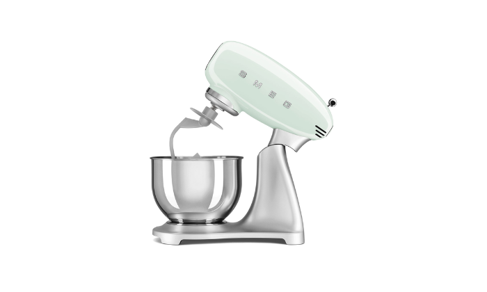 Bring vintage charm and powerful performance to your kitchen with the Smeg Stand Mixer. Designed in an iconic 50s retro style and finished in glossy pastel green with silver accents, this mixer is as eye-catching as it is functional. Crafted from premium die-cast aluminium with a stainless steel bowl, it delivers durability, stability, and timeless appeal.