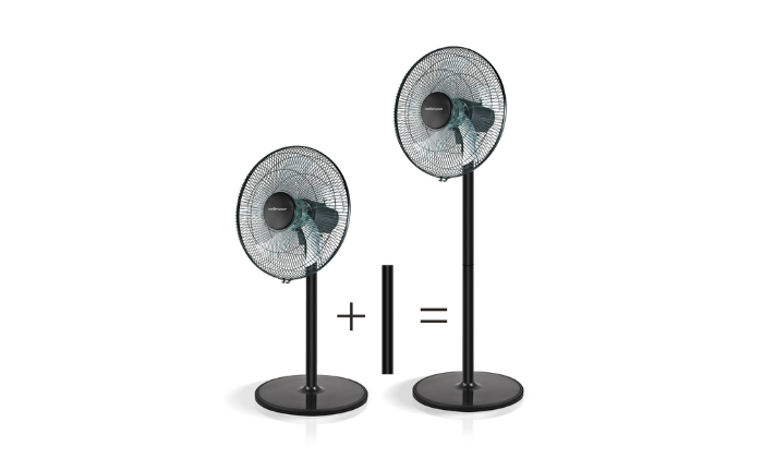 Mellerware Fan 3 Speed Height Adjustable Pedestal Steel Black 40cm 50W