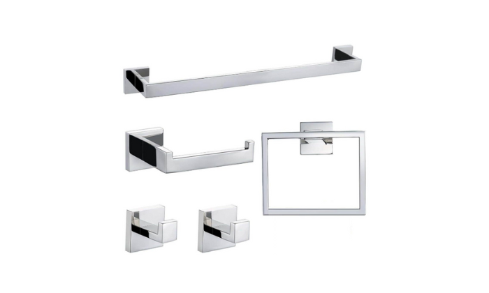 Jack Brown Premium Stainless Steel Bathroom Accessory Set Square - 5-Piece