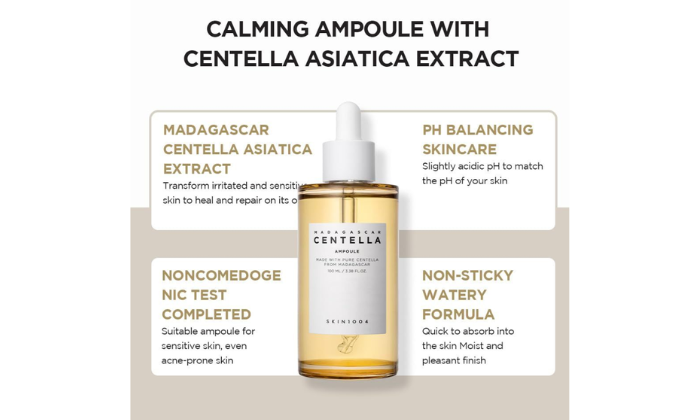- Centella Asiatica Extract (100%) — Known for its healing and anti-inflammatory properties, it helps reduce redness, calm irritation, and promote collagen production for youthful skin.