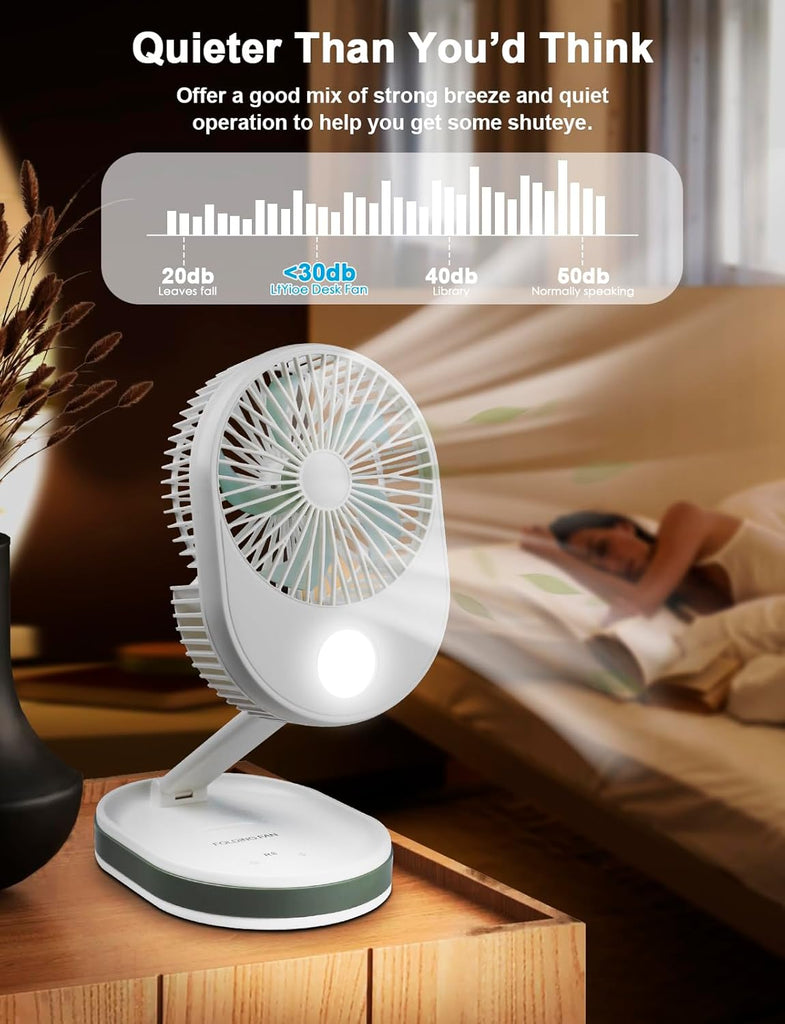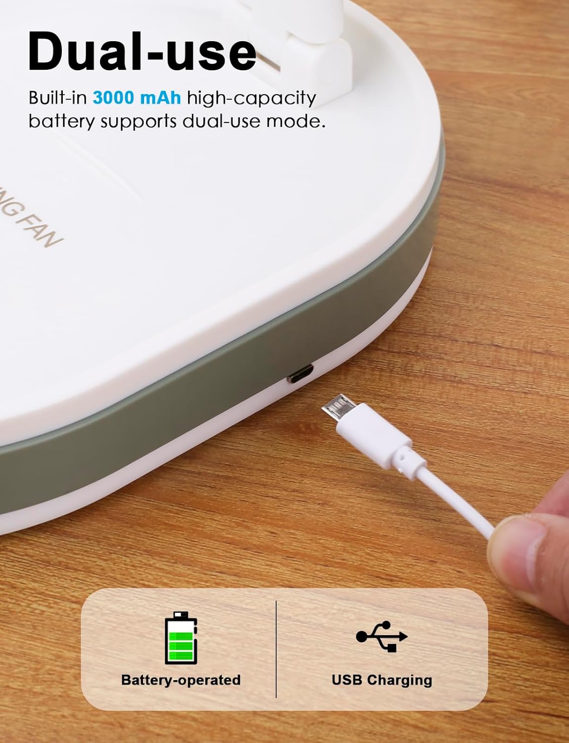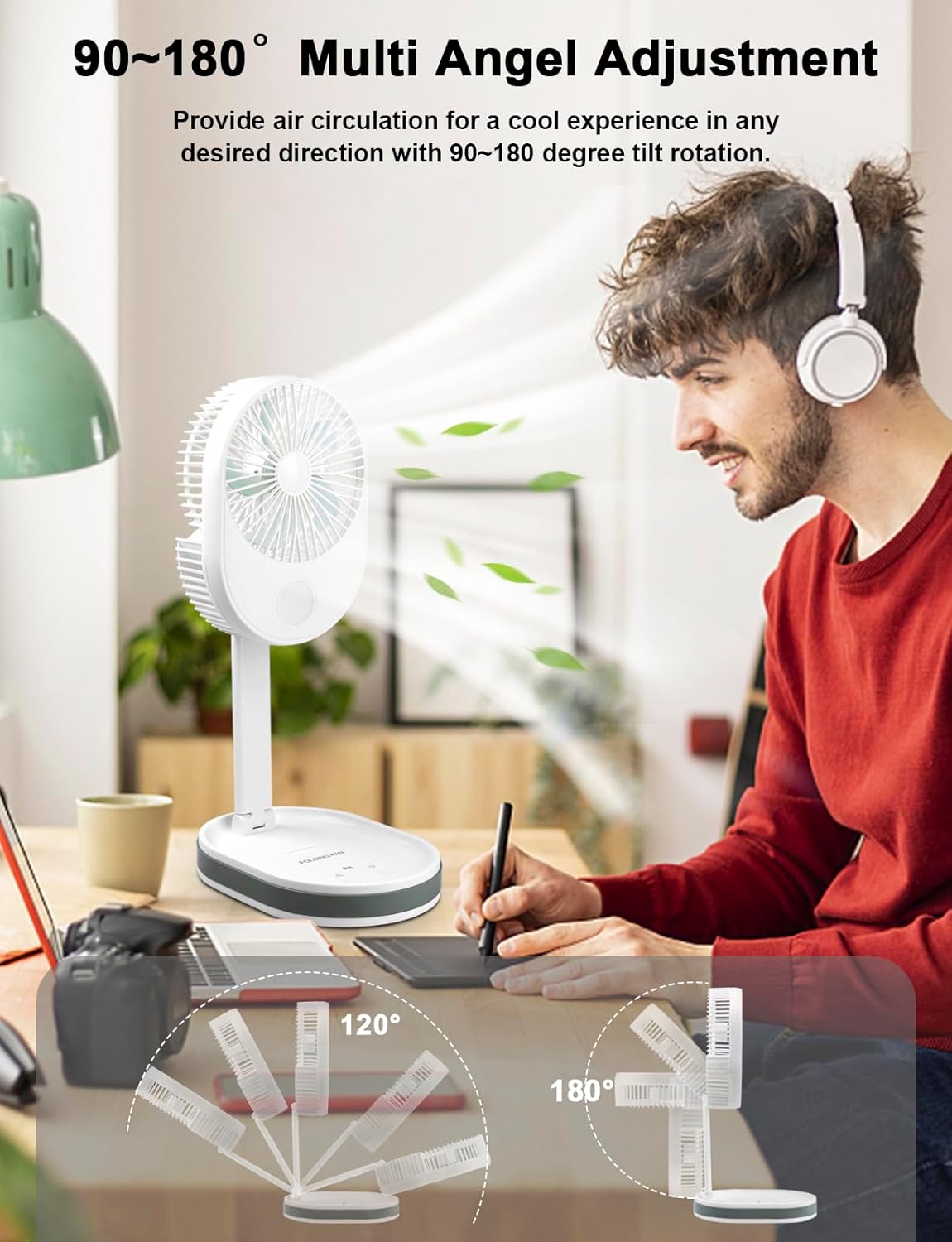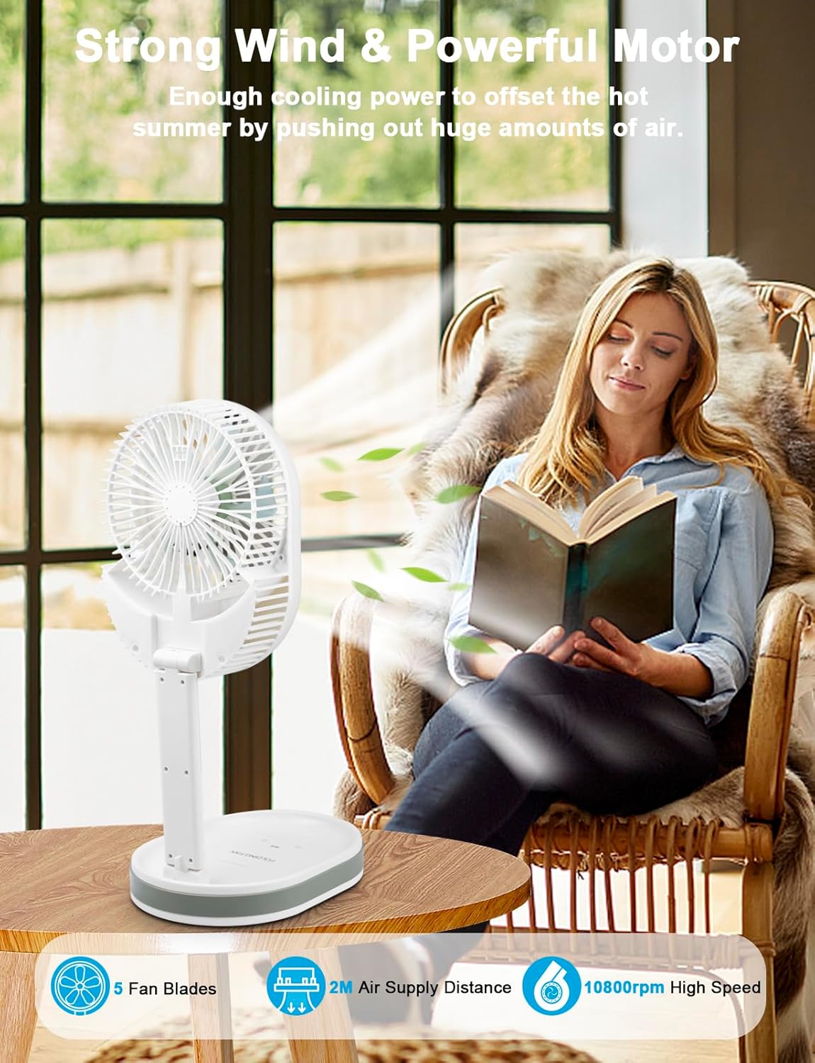 The foldable rechargeable fan is a great choice for home, office, camping, travel, and outdoor activities.