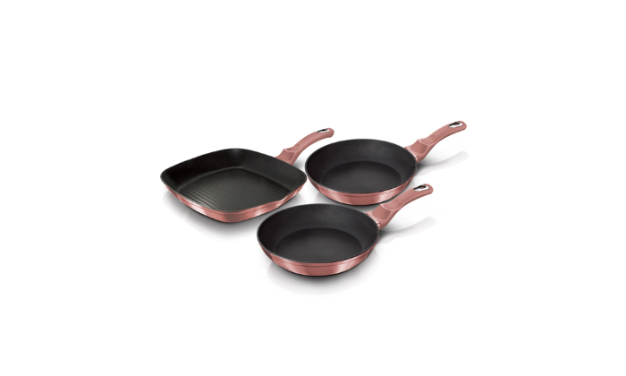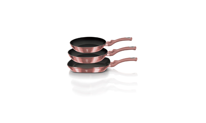 Enjoy versatility in the kitchen with this 3-piece frypan set featuring stylish rose-gold design. Ideal for everyday cooking and family meals.