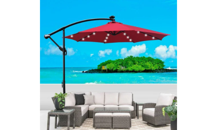 The MFurn Outdoor Patio Umbrella combines shade, style, and solar-powered LED lighting for a comfortable and illuminated outdoor experience.