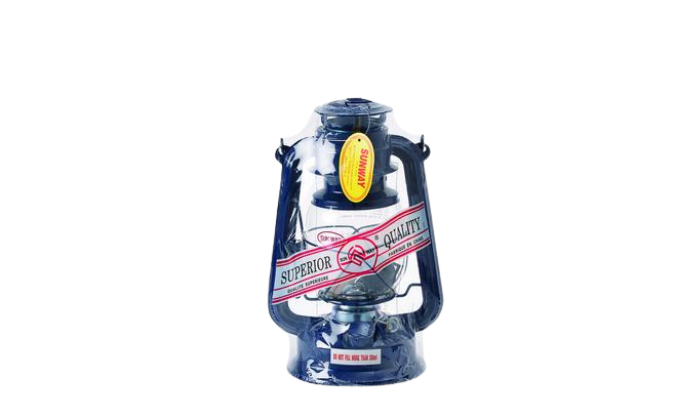 A classic-style hurricane lantern, 28cm tall, available in assorted colours for decoration or emergency lighting.