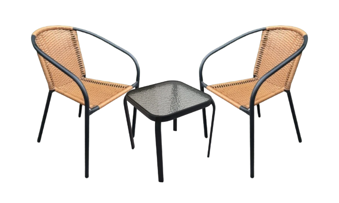 A stylish and practical outdoor seating set, perfect for morning coffee, casual dining, or evening relaxation.