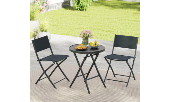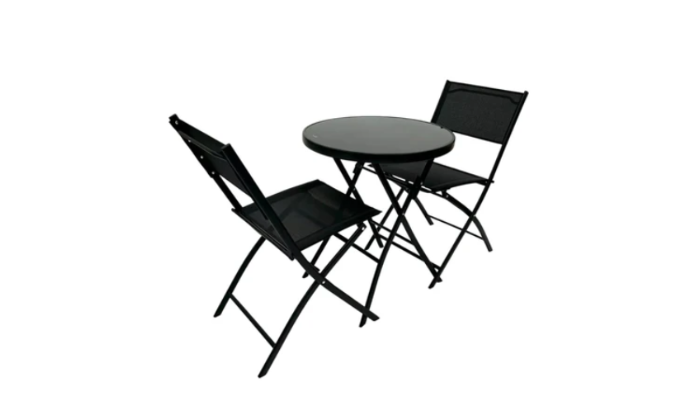Bring style and comfort to your outdoor space. The MFurn Alicia 3-Piece Folding Bistro Set is perfect for balconies, patios, gardens, and cosy outdoor dining. With a modern black finish and foldable design, it’s both practical and elegant.