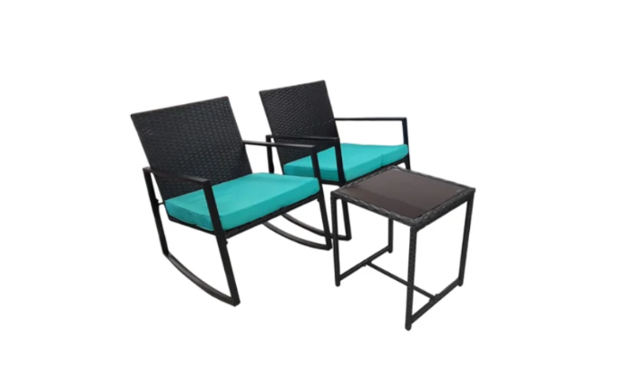 The MFurn Gigi 3-Piece Bistro Set offers a stylish rattan design with comfortable cushions and a tempered glass table, perfect for outdoor dining or casual coffee breaks.