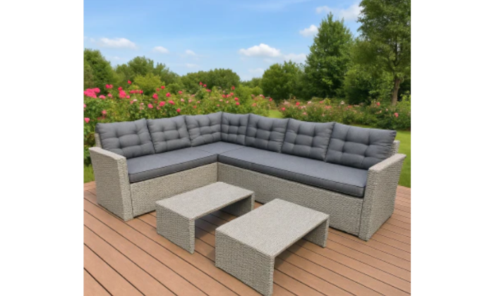 - Corner lounge configuration → Optimized for patios