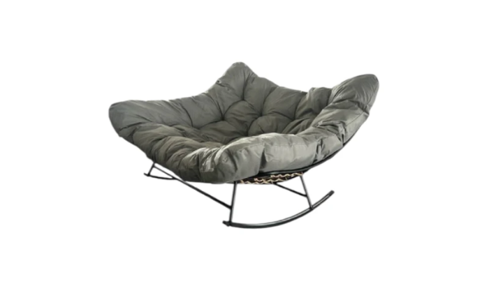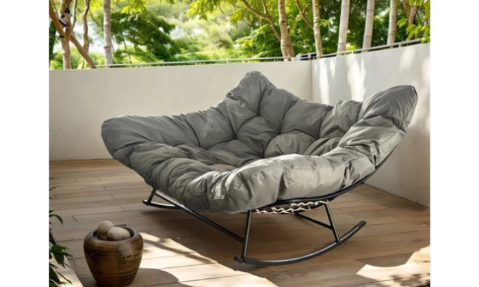 The MFurn Roch Double Egg Rocking Chair provides a cozy retreat with its oversized cushioned seat and stylish egg-shaped design, perfect for outdoor or indoor relaxation.