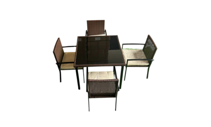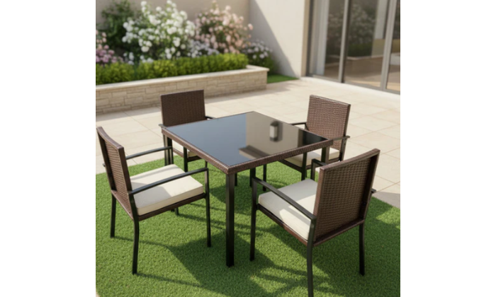 The MFurn Shirl 5-Piece Patio Dining Set is a stylish outdoor dining solution with PE wicker and soft cushions, perfect for alfresco meals and entertaining.