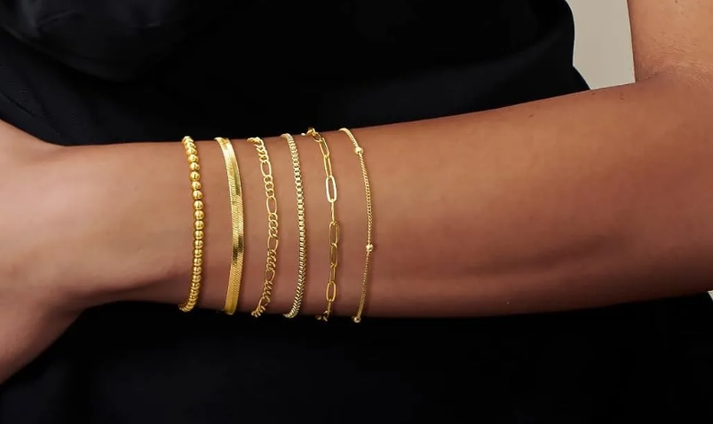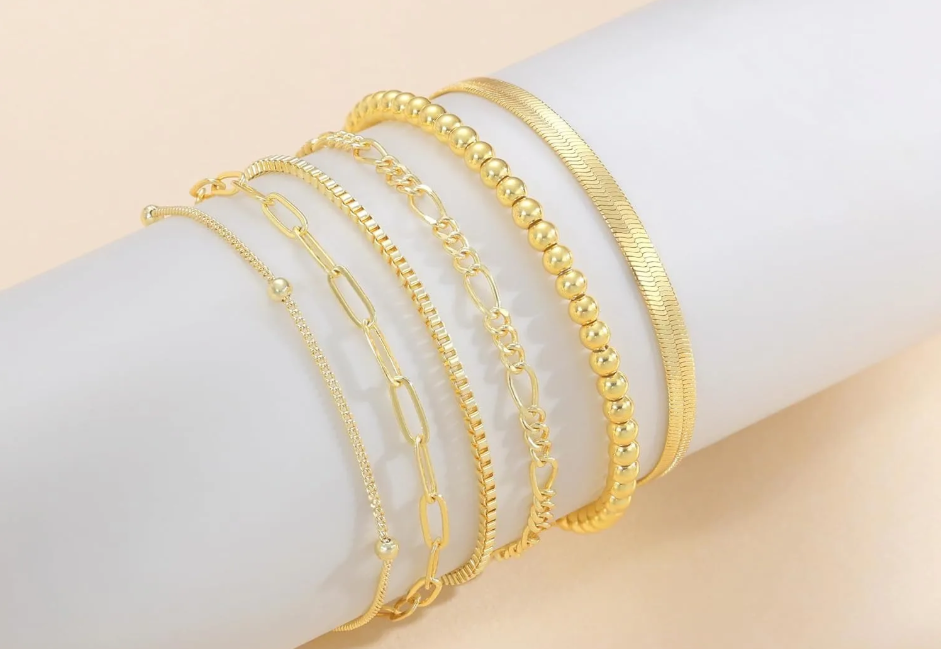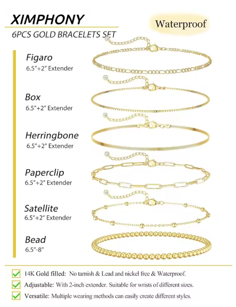 Elevate your style with this 6-piece waterproof 14K gold bracelet set, perfect for stacking or wearing individually!